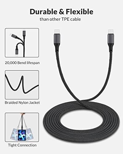 [6FT Long USB C to C Cable] With 6ft long cord, you can freely use cell phone or tablet in the bedroom, on the sofa, or even in the back seat of the car. 6ft USB C to C Cable with durable nylon braided materials, makes tensile force increased by 150%, can bear 20,000+ bending test.