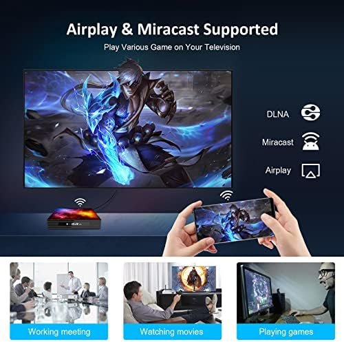 ✴️【Airplay & Miracast Supported】This android tv box supports Miracast and Airplay, you can play games and watch movies on the big screen. 3D 4K H.265 UHD video, so you can play thousands of Android Enjoy a higher quality experience with less buffering.