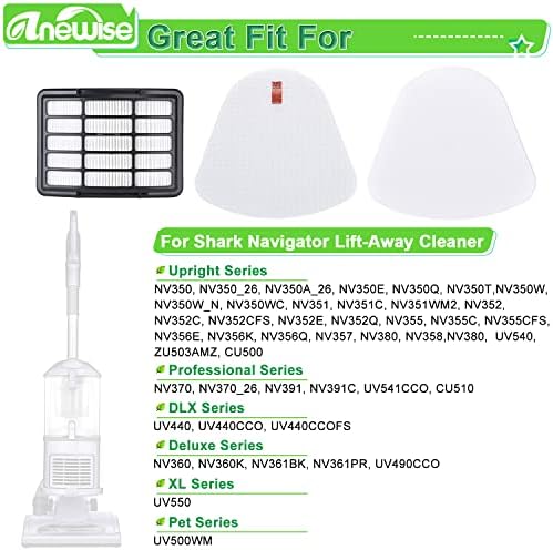COMPATIBILITY – These vacuum filter replacement fit for Shark Navigator Lift-Away Upright vacuum: ZU503AMZ, CU500, CU510, NV350, NV350_26, NV350A_26, NV350E, NV350Q, NV350T, NV350W, NV350W_N, NV350WC, NV351, NV351C, NV351WM2, NV352, NV352C, NV352CFS, NV352E, NV352Q, NV355, NV355C, NV355CFS, NV356E, NV356K, NV356Q, NV357, NV358, NV380, UV540, NV370, NV370_26, NV391, NV391C, UV541CCO, NV360, NV360K, NV361BK, NV361PR, UV490CCO, UV500WM, UV440, UV440CCO, UV440CCOFS, UV550. Compare to parts #XFF350 & #XHF350.