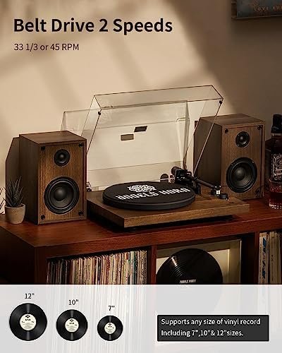 Integrate with your house: The natural wood appearance design suits perfectly with your bookshelf or furniture, this set of vinyl record player with 2 bookshelf speakers are also an awesome decor to have as well. They won’t take up much space in the room and won’t clash with the other home decor.