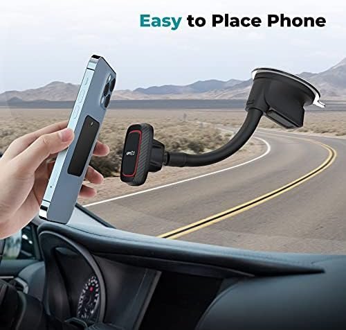 Super Strong Suction Cup – The upgraded suction cup makes this car phone mount more reliable and stronger. With an extra sticky gel pad under the suction cup, this magnetic car mount can stick firmly in place even through the bumpy road, leaving no residue, and providing stronger suction power on your car mount whether dashboard or windshield. (Please avoid exposing it to the sun at high temperatures for a long time)