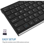 Package contents: Arteck Stainless 2.4G Wireless Keyboard, nano USB receiver, USB charging cable, welcome guide, our 24-month warranty and friendly customer service.