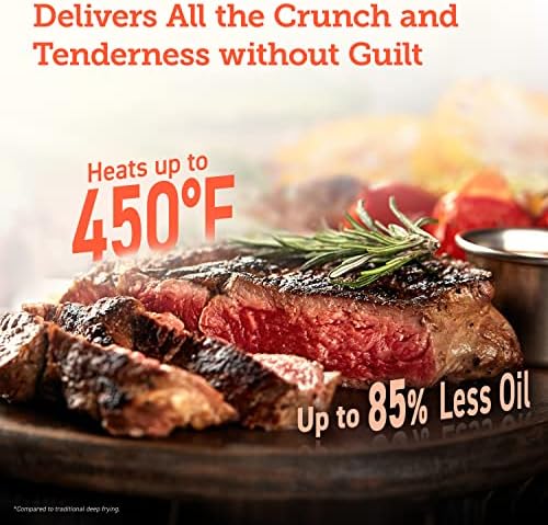 ENJOY MEALS IN MINUTES: This air fryer cooks with industry-leading temperatures up to 450 degreeF, making heating efficiency 20 percent faster than before. Help you prepare a quick meal.