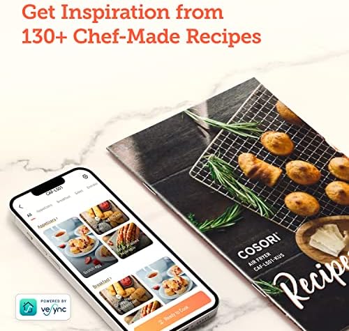 COOKBOOK and ONLINE RECIPES : Always be inspired to cook with an included cookbook of 30 original recipes by Cosori chefs and 100 plus recipes on the free VeSync app. You’ll be cooking like a pro in no time