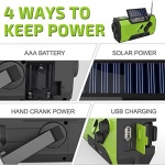 【4 WAYS TO POWER KEEP YOU NEVER POWER OFF】The emergency crank radio with a 2000mAh built-in battery doesn’t only charge via USB Cable, you also could power the emergency radio by hand crank and solar panel to ensure that you can use the solar crank radio normally. AAA batteries, which are found in every household and easy to get, ensure you have power when not able to regenerate power. Never run out of electricity!