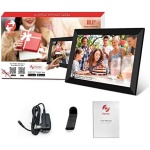 【IMPRESSIVE FUNCTIONS】Akimart WiFi digital picture frame can automatically rotate photos to adjust the direction, Come with a detachable holder as a frame stand, allowing you to view the photos in either portrait or landscape mode. Display caption, weather and clock, you can sett turn on or off ( Need update to latest software). Multifunctional custom settings, such as play order, image zooming, hide/publish images, adjustable brightness, sleep mode, etc.