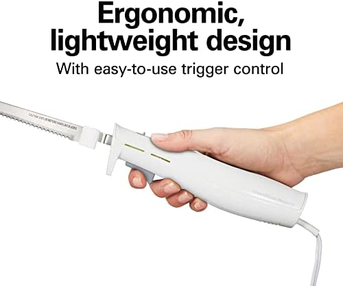 ERGONOMIC, LIGHTWEIGHT DESIGN: The electric knife is lightweight and has an ergonomic, hand-contoured grip that’s designed to fit comfortably in either hand. The knife is easy to operate with a simple trigger control.