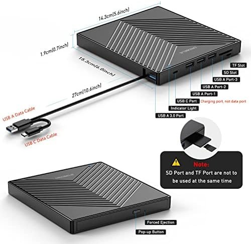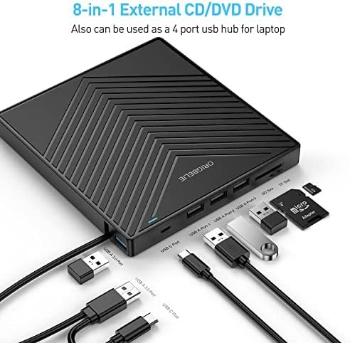 Hiarkio ORIGBELIE External CD DVD Drive, Ultra Slim CD Burner USB 3.0 with 4 USB