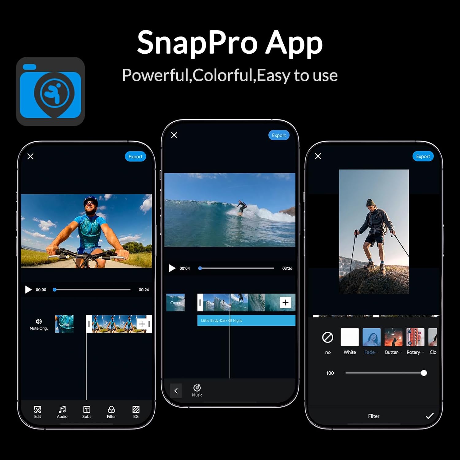 【Powerful APP Functions】- Connect the camera to the Snap-Pro APP via WiFi, and easily import and export images and videos. The APP’s video editing feature offers a wealth of tools and materials. Users can import background music, add subtitles, select filters and backgrounds, and preview the editing effects, meeting diverse creative needs