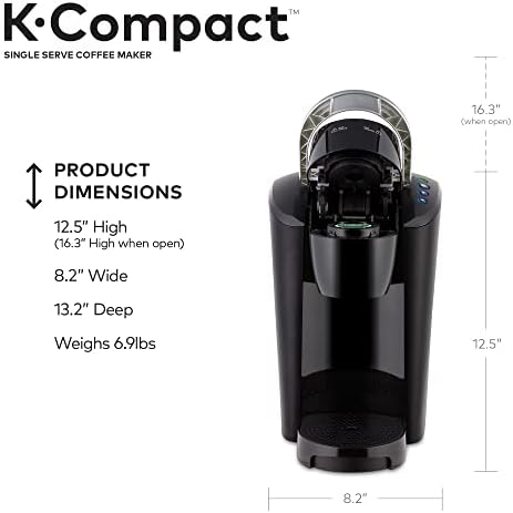 Space saving. Crowd-pleasing. The slender and stylish Keurig K-Compact single serve coffee maker offers consumers a space-saving design to fit their countertop, but still delivers the delicious taste and unparalleled convenience that the Keurig brand is known for. Designed to leave the smallest footprint possible, the Keurig K-Compact brewer in Black is just over 8 inches wide, leaving you plenty of space on your countertop without sacrificing a thing. Brew 6, 8, or 10 oz. of your favorite beverages in under a minute. Choose from hundreds of delicious K-Cup pod varieties coffee, tea, hot cocoa, iced beverages, and more and enjoy a perfect cup, every time. Or brew your own ground coffee with the Keurig Universal My K-Cup Reusable Coffee Filter (not included). The Smart Start feature heats and then brews in one simple process for even more convenience. The K-Compact brewer has a removable drip tray to accommodate travel mugs, and its 36 oz. removable water reservoir allows you to brew multiple cups before refilling.