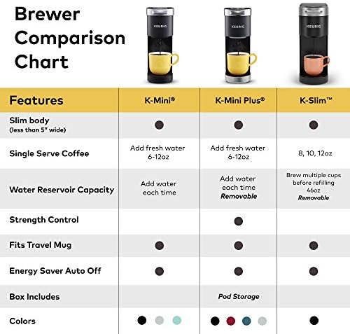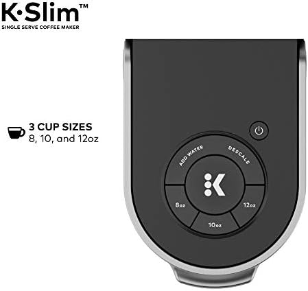 Enjoy ease and great taste in little space with the Keurig® K-Slim® single serve coffee maker. At just 5” wide, the K-Slim® coffee maker fits neatly on your countertop, making it the perfect choice for when space-saving and simplicity are important. The K-Slim® coffee maker brings together the performance and simplicity that Keurig® is known for, in a slim and sleek design. You also get the convenience you desire with the capacity to brew up to four 8 oz. cups before refilling the 46 oz. removable water reservoir, and the ability to enjoy a fast and fresh-brewed 8, 10, or 12 oz. cup at the push of a button. Choose from hundreds of flavorful K-Cup® pod varieties of coffee, tea, cocoa, and more. With the K-Slim® coffee maker, your delicious morning cup or midday pick-me-up is always ready in minutes, and you never have to sacrifice countertop space for taste again.