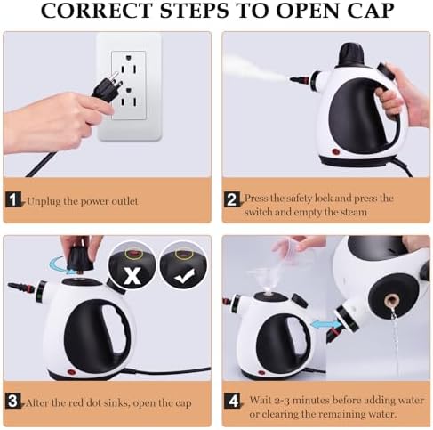 🌱Natural & Safe: Steam cleaner for home 100% Natural with no harmful fumes or residue. Includes a safety lock on the handle and a safety cap for added peace of mind for your safety. It can be used with confidence around children and pets.
