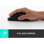 Your hand can relax in comfort hour after hour with this ergonomically designed mouse. Its contoured shape with soft rubber grips, gently curved sides and broad palm area give you the support you need for effortless control all day long.