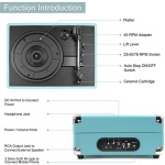 [Suitcase Portable Vintage Turntable]The record player with solid wooden cabinet wrapped with premium PU leather is designed as compact and potable style. The carry handle makes it easy to carry to anywhere, and secure metal lock makes it convenient for storing. The back is firmly connected by metal hinge