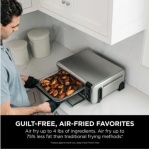 The Ninja Foodi digital air fry oven packs a lot of features and cooking Capacity in a small countertop footprint. Air fry, air roast, air broil, bake, bagel, toast, dehydrate, and keep warm- all in one appliance- and when you’re done cooking, reclaim your counter space by simply flipping the oven up and away to clean and store.