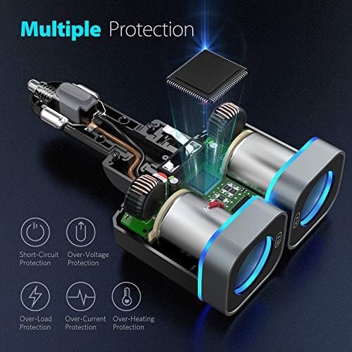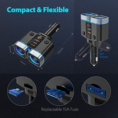 【Two 15A Spare Fuses】: Two high-quality 15A car charger fuses are included in this USB cigarette lighter adapter.