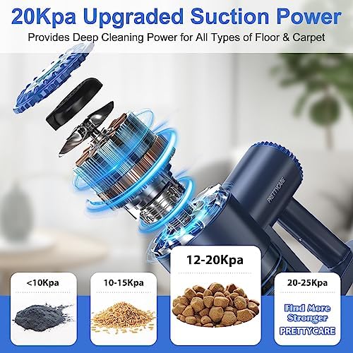 🏚️【POWERFUL SUCTION & LARGE-CAPACITY BATTERY】: Vacuum cleaner bagless features a powerful motor with 20,000Pa suction / 2 speed levels , household vacuum cleaners can easily complete deep cleaning for carpets, hardwood floors, and pet hair. Equipped with 6* Large-Capacity Batteries and Super Fast Charging, the long runtime of this vacuum cleaner carpet can meet your daily cleaning needs perfectly.