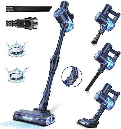 🏠【FLEXIBLE LED BRUSH & MULTIFUNCTIONAL USE】: Bagless vacuum cleaner’s 90+180° flexible stick brush with strong LED headlights can easily adjust the angle to clean particles and dust in dark places. Carpet vacuum cleaner with a 1.2L large-capacity dust container and One-Click Dust Release, this vacuum cleaner pet makes cleaning easier than ever. NOTE: after washing the dust cup and cotton filters, please make sure they are thoroughly dry before use again.