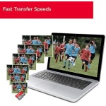 Up to 120MB/s transfer speeds let you move up to 1000 photos in a minute (5). Up to 120MB/s read speed, engineered with proprietary technology to reach speeds beyond UHS-I 104MB/s, require compatible devices capable of reaching such speed. Write speeds lower. Based on internal testing; performance may be lower depending on host device, interface, usage conditions and other factors. 1MB=1,000,000 bytes. (5)Based on internal testing on images with an average file size of 3.55MB (up to 3.7GB total) with USB 3.0 reader. Your results will vary based on host device, file attributes, and other factors.