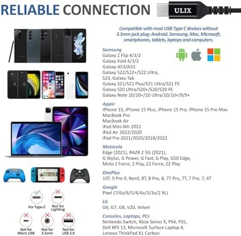 GOOGLE Pixel 7/6a/6 PRO/6/5/4/4a — Edge 2021 — LAPTOPS: DELL XPS 13, MICROSOFT Surface Laptop 4. And more devices without a 3.5mm jack port. Feel free to contact us for any compatibility issues. We provide a 5 year warranty and our customer support is here to answer questions 24/7