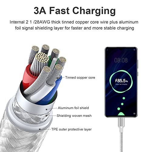 【USB C Charger Perfect Compatibility】We provide this (Blue 3ft/Green 3ft/Purple 6ft/Pink 6ft/White 10ft) 5-Pack Nylon Braided USB Type-C Cable . Compatible with all USB C devices, charger for Samsung Galaxy S22/S20/S20Plus/S20Ultra/S10/S10e/S9/S8, Note 20 10 9 8 Plus/S8+, LG G6,G5,V30,V20, LG Nexus 5X , Lumia 950, Lumia 950XL,Huawei P50 40 30 20/Mate40 Pro/nova 8 Pro and other usb type c cable device.