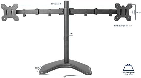 Heavy Duty Base – Measures 13″ x 10.5″ providing solid stability while monitors are held within its center of gravity. The bottom of the base features padding to protect your desk from scratches.