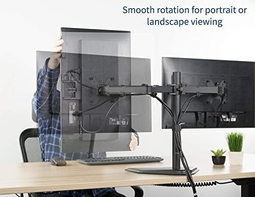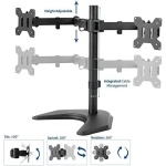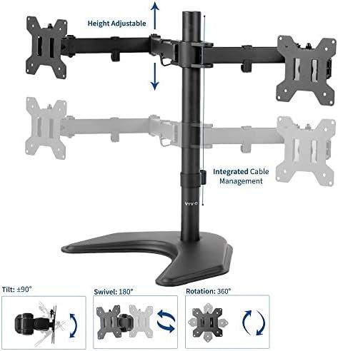 Full Articulation – Adjustable mount offers +90° to -90° tilt, 180° swivel, 360° rotation, and height adjustment along the center pole. Warning: Please do not pull monitor(s) too far forward or backward beyond the stand’s center of gravity, as this will cause stability issues.