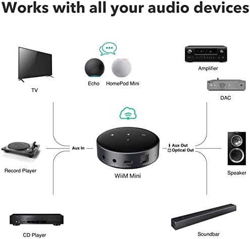 WORKS WITH ALEXA AND SIRI – Experience the convenience of using WiiM Mini with both Alexa and Siri Voice Assistants. Control music, adjust volume, and manage playback seamlessly using voice commands from your phone, HomePod, or Echo. Integrate it effortlessly with your current smart home devices through either Alexa or Apple Home for enhanced smart living.